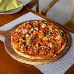 Ham, Pineapple, black olives pizza topped with Mozzarella and oregano previous post Cajun Spiced Grilled Vegetables, Corn and Mushroom Wraps (Vegan) next post Tandoori Chicken Pizza