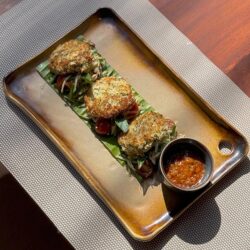 Arabic preparation of chick pea tahini dip accompanied by toasted unleavened bread and sticks of vegetables previous post Char Grilled Tomato, Zucchini, Blue Cheese and Nut Salad (V) next post Sri Lankan Spiced Crab Cake