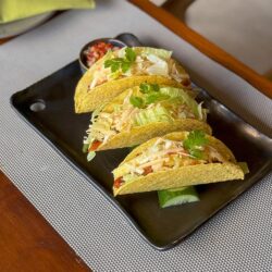 Indian spices and buffalo curd marinated Prawns and vegetables wrapped in pita bread accompanied with cucumber raitha and sweet potato chips previous post Club Sandwich next post Grilled Bacon, Pineapple and Cheddar Taco